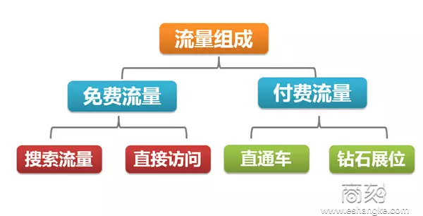 图d:将流量结构按照免费与付费拆解,再深一步细分,对流量成分更全更细的拆解(其实还可以分更细,此处以思路为重点就暂不展开