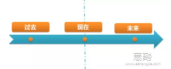 那么在数据分析思路之外,再补充一个关键点,就是三大数据类型。三大数据类型是按照时间序列的细分,来给数据堆中的数据指标做的分类。如图的时间轴,我们分为“过去”、“现在”和“未来”。