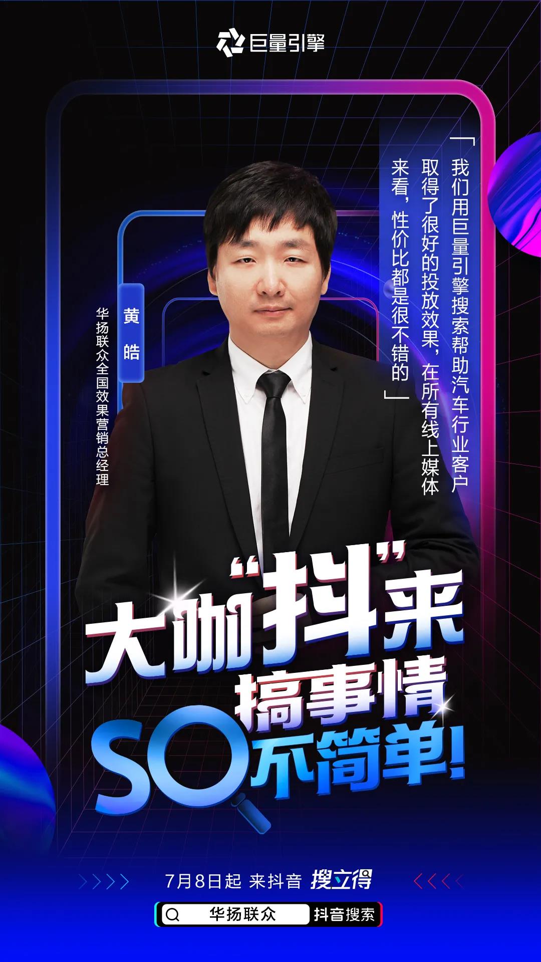 华扬联众全国效果营销总经理黄皓 便在分享中提到,他们使用巨量引擎搜索广告帮助汽车行业客户取得了很好的投放效果,在所有线上媒体来看,性价比都是很不错的。