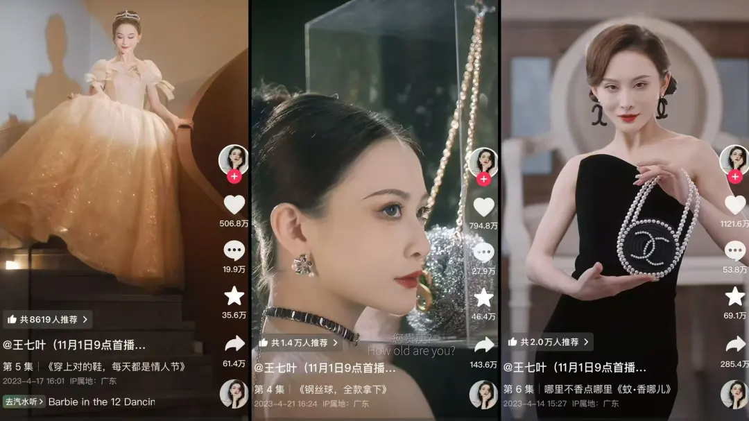 这些视频既保留了王七叶原本的风格特色,又有着奢侈品广告大片的既视感。